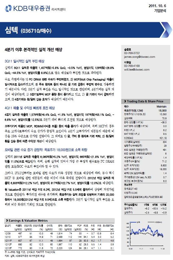 2011년 3분기 실적부진은 일시적인 것이다. - 대신증권