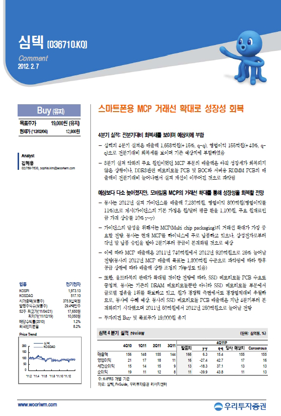 스마트폰용 MCP 거래선 확대로 성장성 회복 - 우리투자증권