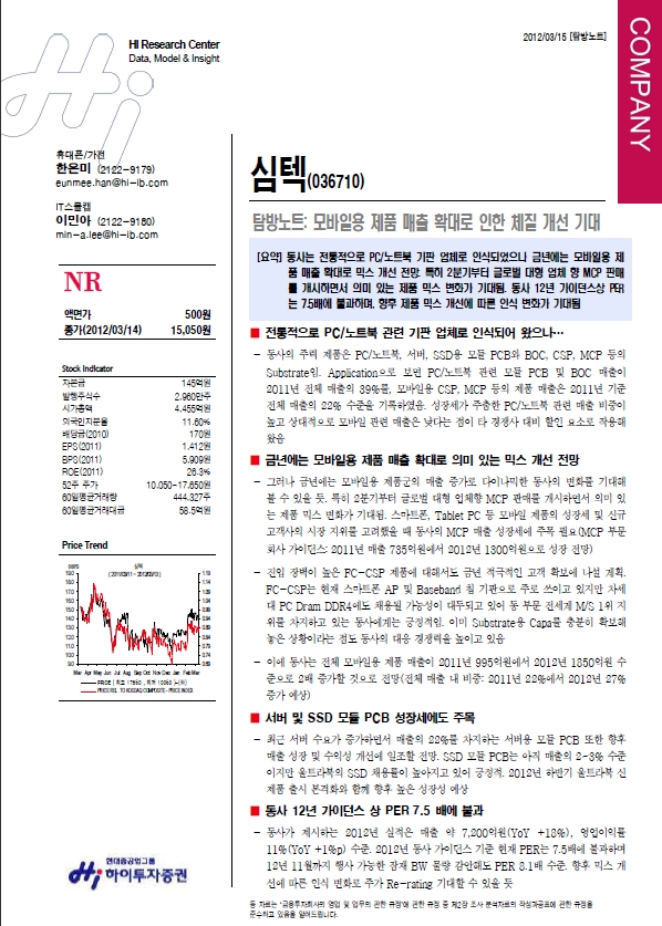 모바일용 제품 매출 확대로 인한 체질 개선 기대 - 하이투자증권