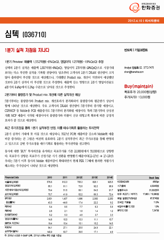 메모리 시장 변화 및 모바일 비중확대로 2분기 이후 수익성 회복 - 대신증권