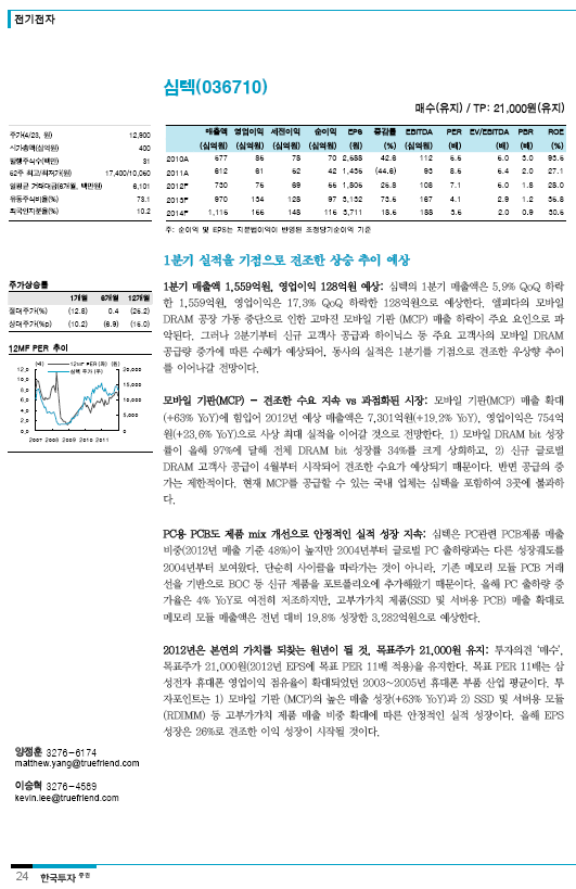 1분기 실적을 기점으로 견조한 상승 추이 예상 - 한국투자증권
